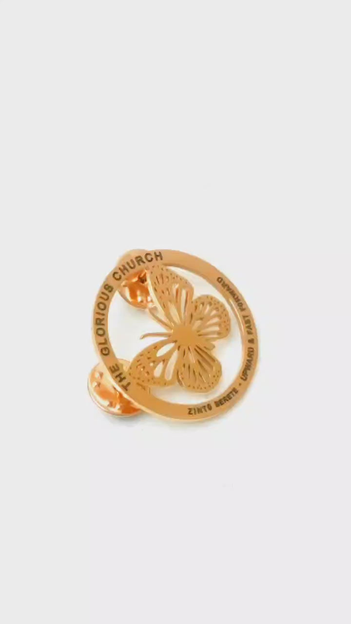 Elevate your style with our exquisite Lapel pin,crafted from durable stainless steel and adorned with an 18k Rose Gold plating. This timeless accessory boasts a 33mm diameter and features an inspiring engraving: 'The Glorious Church - Zinto Berete - Upward & Fast Forward,'